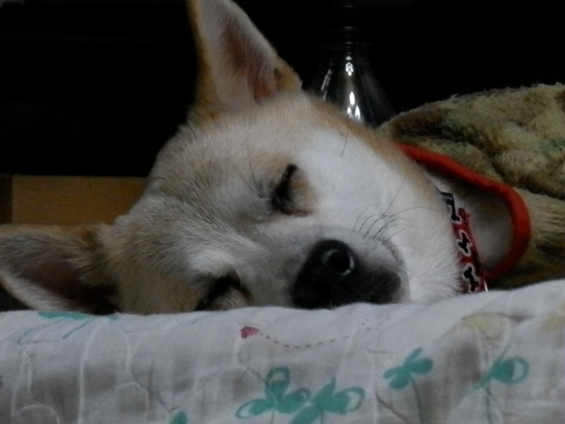 そして、ろろたはろろたで、朝、おかあちゃんが座敷におせちの用意をしてたらテーブルの上を見に行くんで「こっち来てなさい」言ってたんですが、ねえちゃんの傍に伏せてたはずが、ねえちゃんがほんの10数秒席を立った隙に姿が消える。