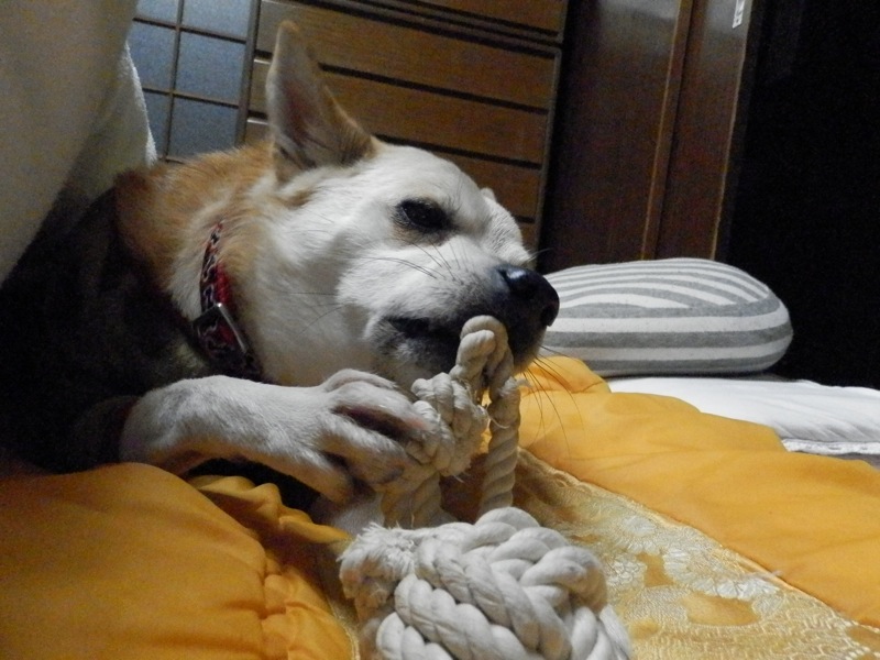 てっきり、結び目解こうとしてんのかと思ったら、結び目じゃないとこ齧ってた;