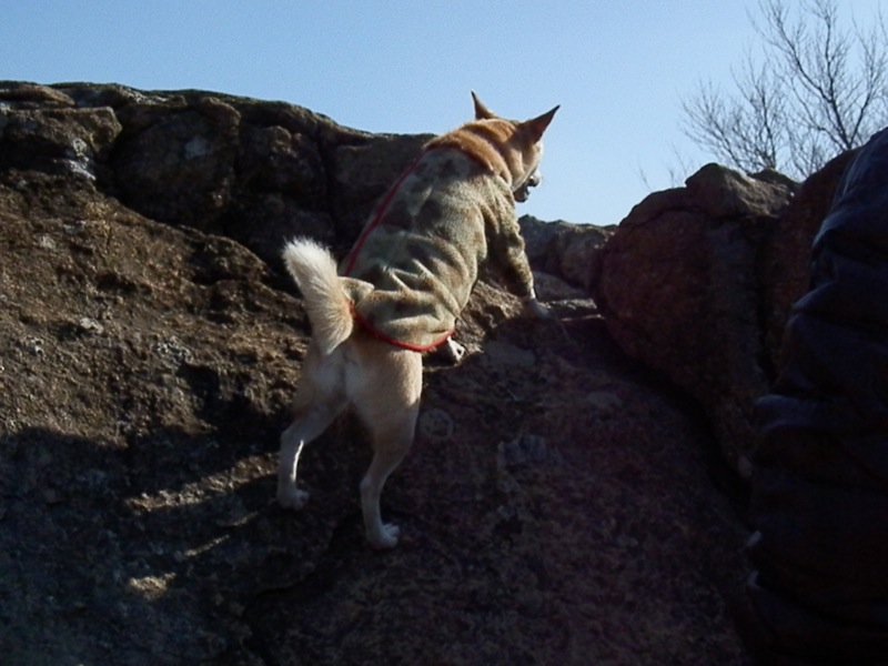 岩に登ったり。