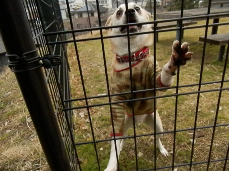 ねえちゃん見つけたと思ったらフェンスの向こうでこの表情。(^m^)