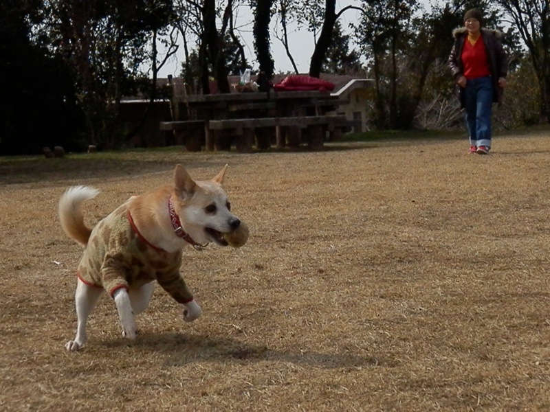 投げてやったら、休憩してマッサージしてもらったことで回復したのか、再び元気に走っておりました…。