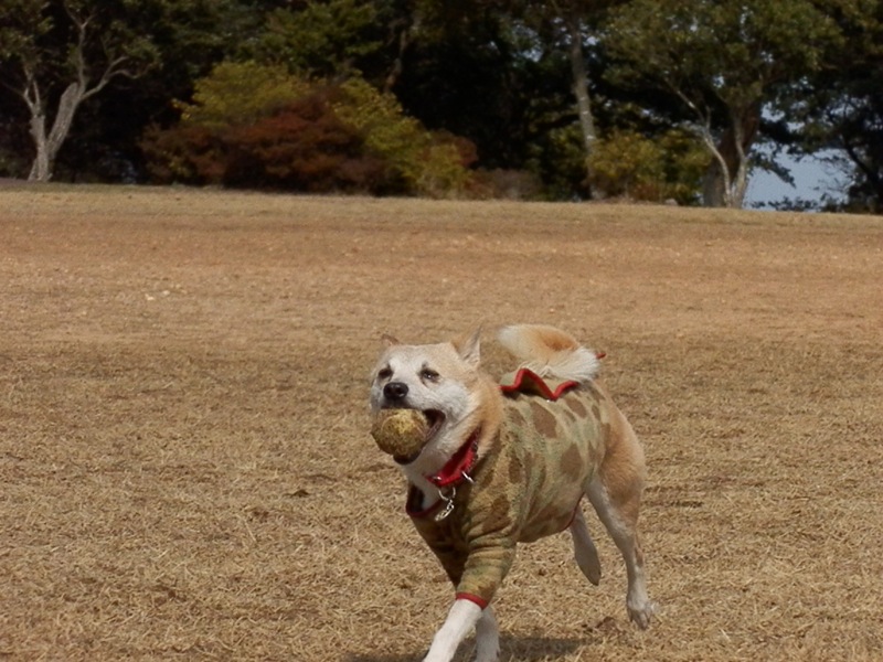途中、ボール咥えたまんま水飲みに行ったと思ったら、水入れの中にボール落とした所為もあって、黄色いはずのボールが土塗れで保護色に成り果てておりました…。