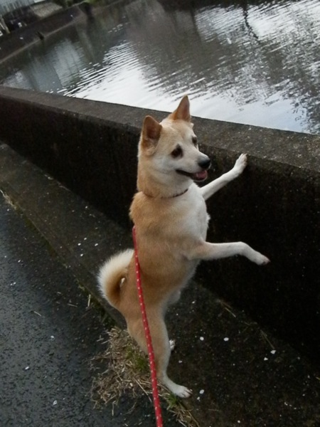 ねえちゃんが水鳥を見つけて「あ、鳥」と言ったら、「どこどこどこ??」と言わんばかりに立ち上がって探しとりました。