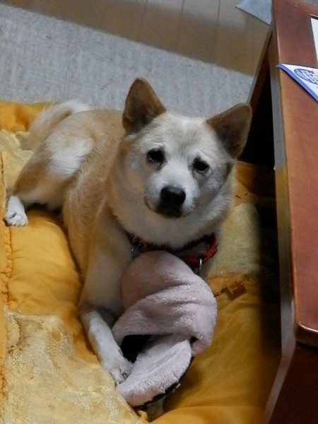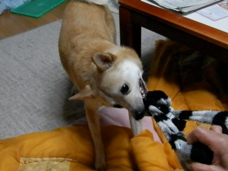 今朝もキャベツと思しきものがちょろりと出てたのを取ろうとしたら暴れるもんで、「ガウじゃない!」言って首輪を掴み、足で挟み込んで取ってやりました。