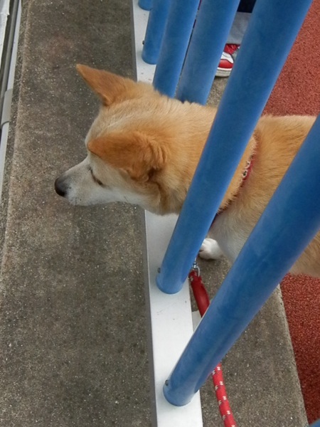 一所懸命吠えてみるも全く敵わず、一旦離れて奥まで散歩して。戻ってきたところでリベンジ!真っ直ぐ走って行ったものの、