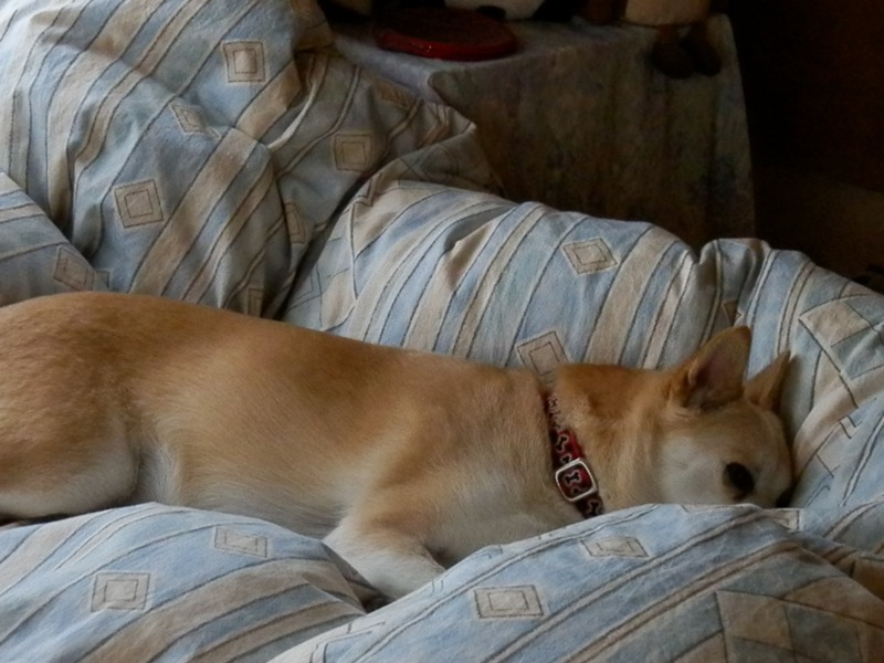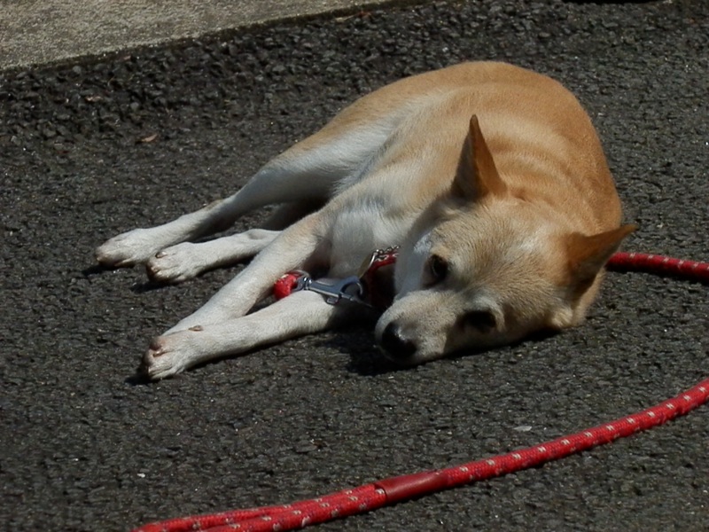 掃除が終わったら外に行きたいと言うので連れて出たら、戻って来て家の前でひなたぼっこを始めるボクちゃん…。