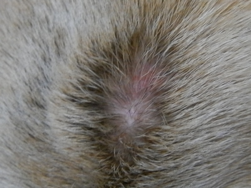 カイカイして毟れちゃったのかな…ノミーナを発見した頃、腰の辺りにやっぱり同じようなちょいハゲができてたけど…。