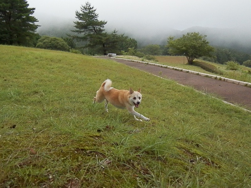 でも山の上だから気温も低いし、陽も射さず風があって気持ち良い所為か、解き放った途端、ひとりでぐるぐる走り回ってたからな。そうやってひとりで走り回るのなんて久しぶりだったよね。