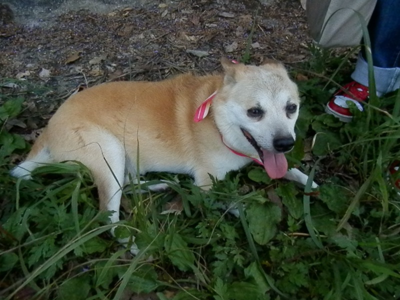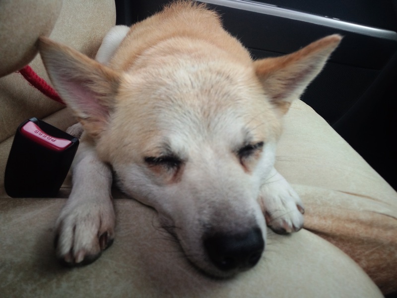 けど、最後の方の陰がない辺りで日陰を求めて車道を渡って行こうとするので、ねえちゃんが抱えて車に戻りました。