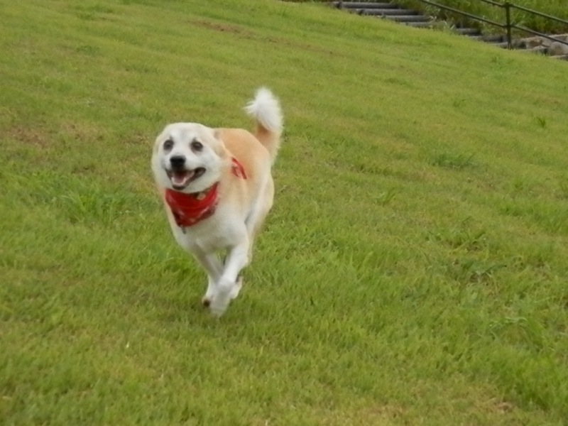 そんなに長くは走らなかったけども、芝の斜面をひとり、ぐるぐる走り回っとりました…。