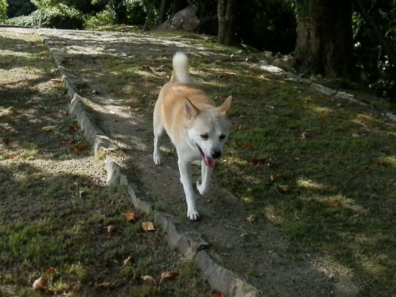 戸ノ隅公園は東屋とトイレしかない広場です。ちょっと草が伸び気味でしたが、解き放つとまたも全力疾走なぼっちゃん。