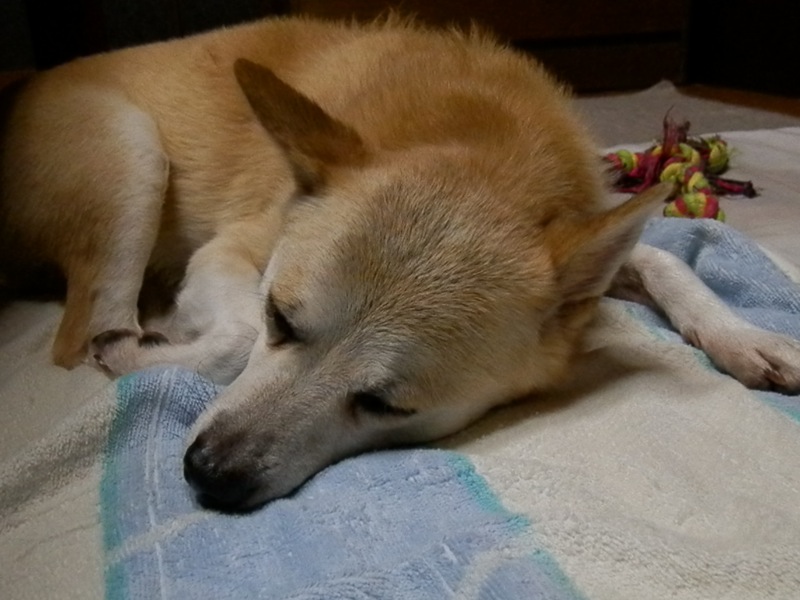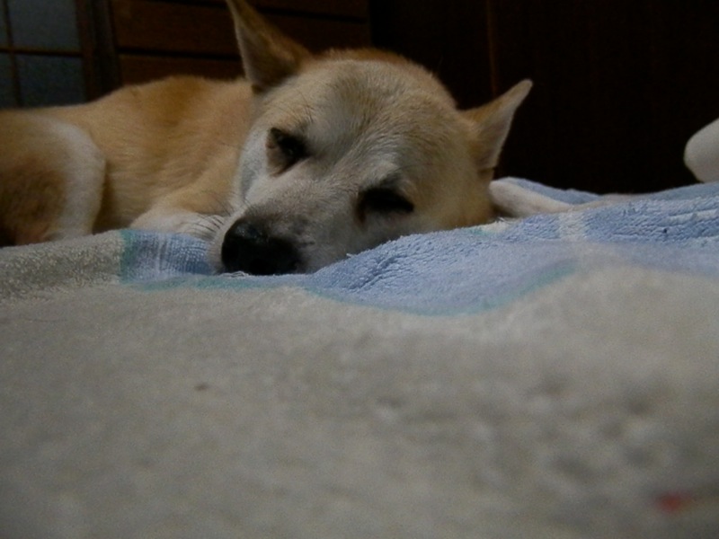昼前にもおかあちゃんに連れ出してもらっといて、午後にはまた玄関や階段の下でちょいちびり、夕方散歩に出たら大放出した上、更に8時前頃ちーに行き、尚且つ、9時過ぎにはまた大放出と言う。