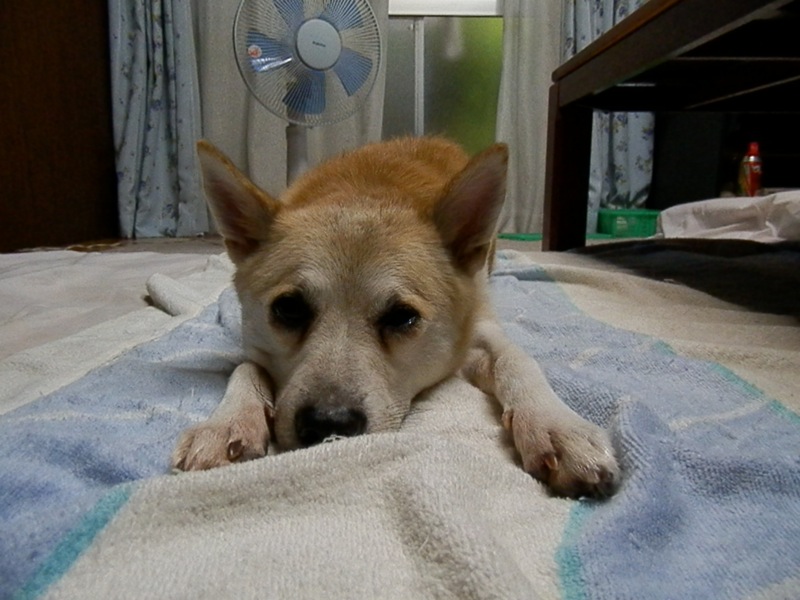 ねえちゃんの方には、タオルケットに入りたいと、横に来てちょいちょい。潜って暫くしたら出て、そしてまた入るとちょいちょい。を、3回くらい繰り返してくれました…。(- -#)