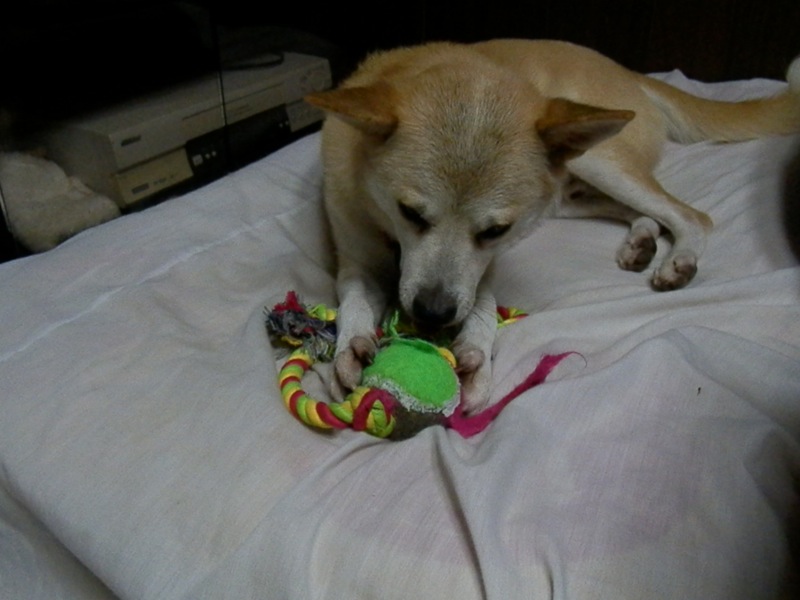 今夜はケット1枚じゃさすがに寒かろうと、少し厚手のを出しましたが、まだ必要らんだろうと思って干してなかったのに…。