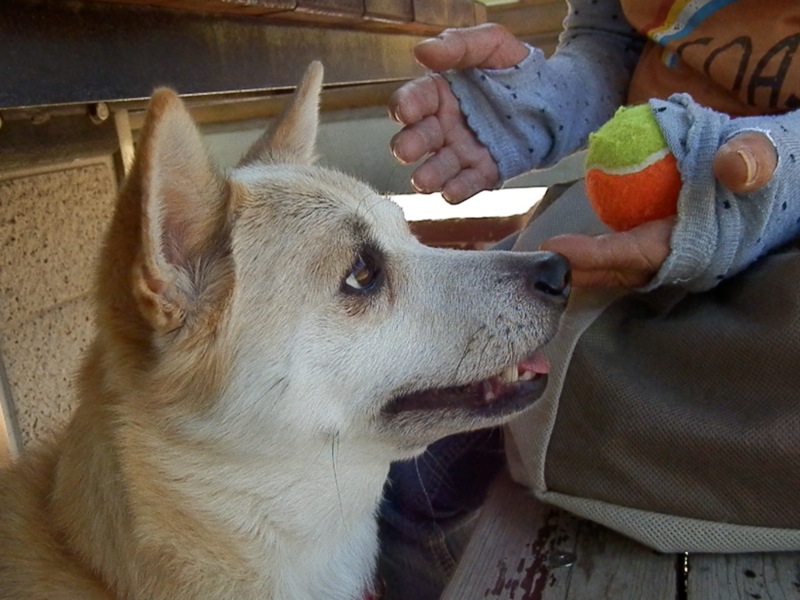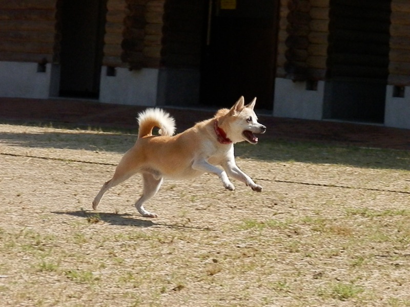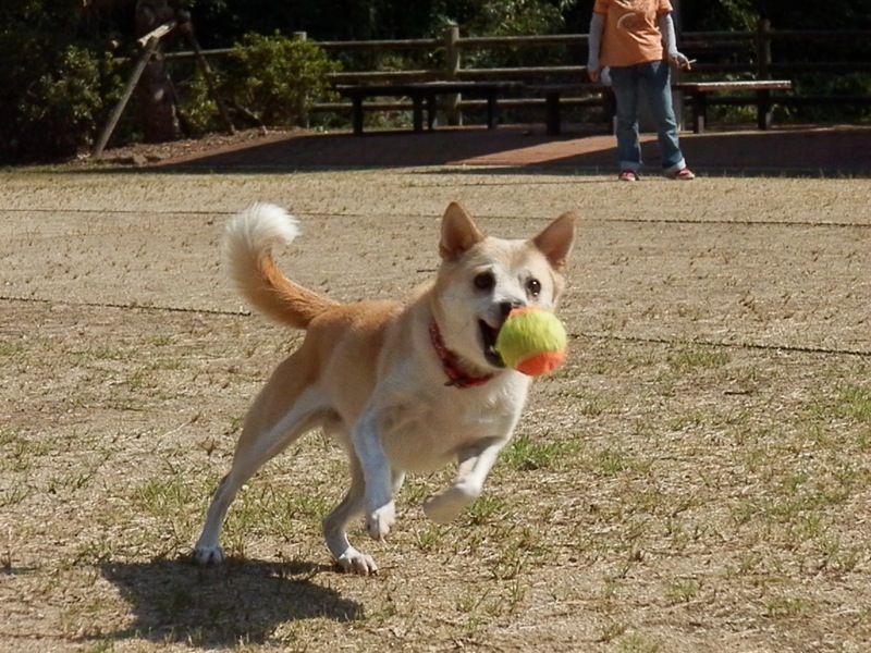 走りに勢いがなくなってきたんで休憩して、おかあちゃんがボール遊び止めて探険しに行こうって誘っても、ボールの方が良いと言わんばかりで、投げればまた走る。