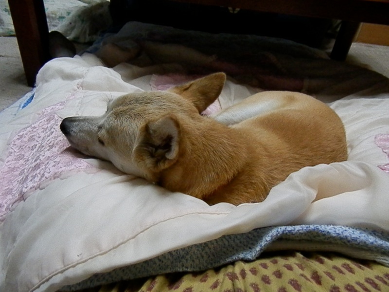 「どした?」て訊いたら、ねえちゃんが座ってる昼寝用の布団の端をちょいちょい、と。