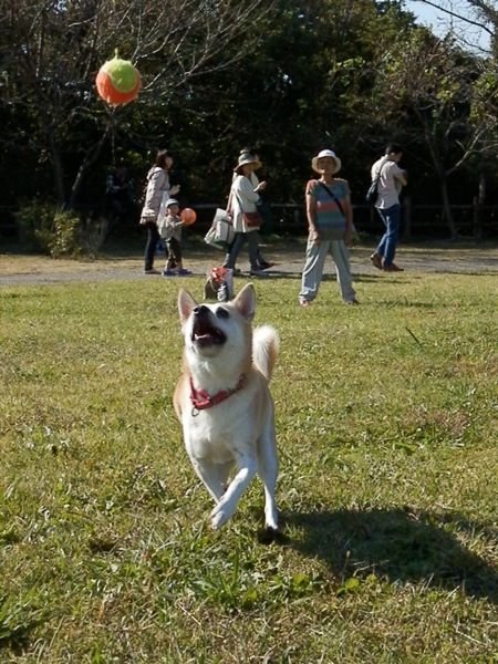 とは言え、自由広場も人が多すぎて、最初は遊ばせられないかなぁって感じだったんだけど、空いたスペースでよく走りました。