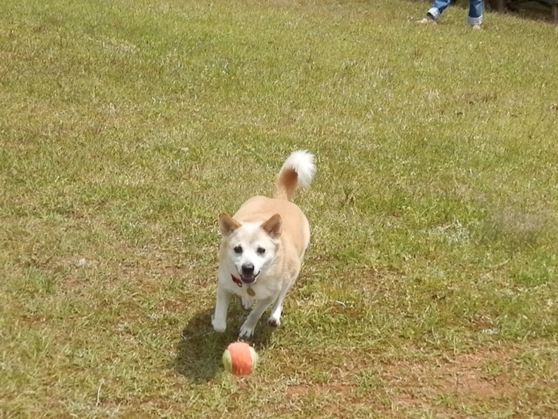 着いた時、犬連れた親子がいて、しかも犬放してたんで遊べないかと思ったけど、幸いすぐに吊り橋の方に行ってくれたのでろろたんも放牧。