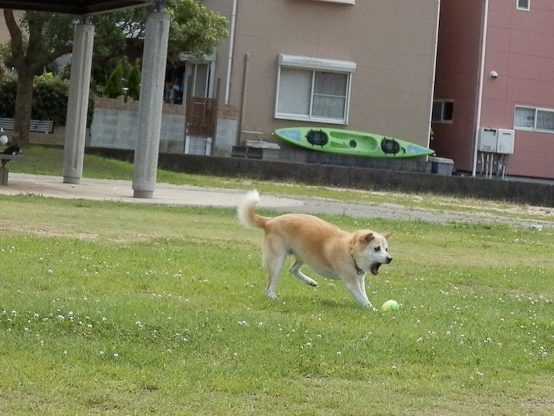 こっちは「あんまり走らせてもバテちゃうし、そろそろいいかな」と思ってんのに、再びねえちゃんにマッサージを要求しては、ボールを持って来る。